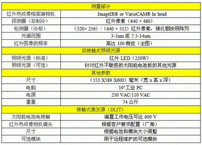 PV-LIT太陽(yáng)能電池和組件在線檢測(cè)系統(tǒng)可對(duì)太陽(yáng)能電池及完整的太陽(yáng)能組件的各種缺陷進(jìn)行全自動(dòng)檢測(cè)。PV-LIT可以在線非接觸快速穩(wěn)定的連續(xù)檢測(cè)生產(chǎn)過(guò)程中的產(chǎn)品,檢測(cè)時(shí)間小于1秒鐘。另外,客戶也可選擇接觸系統(tǒng)(DLIT)進(jìn)行單個(gè)抽檢及詳細(xì)實(shí)驗(yàn)。