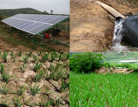 目前絕大部分農(nóng)地是沒(méi)有電網(wǎng)覆蓋,傳統(tǒng)上是靠天下雨或人工從河井里取水進(jìn)行灌溉。隨著氣候的惡化,雨次/量日漸減少,農(nóng)業(yè)灌溉只有依靠人力。太陽(yáng)能揚(yáng)水系統(tǒng)就是依靠太陽(yáng)能發(fā)的電來(lái)帶動(dòng)水泵工作,把水從河或井里抽到農(nóng)地里進(jìn)行灌溉,從而大幅減輕人員勞動(dòng)量。