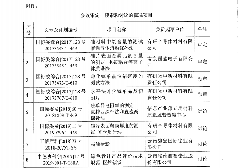 17日,會(huì)議取得圓滿(mǎn)結(jié)束,會(huì)議完成了行業(yè)標(biāo)準(zhǔn)項(xiàng)目的論證并完成了《硅材料中氧含量的測(cè)試惰性氣體熔融紅外法》等8項(xiàng)光伏半導(dǎo)體材料國(guó)家和行業(yè)標(biāo)準(zhǔn)的預(yù)審、討論和討論。