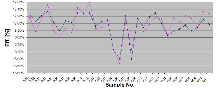 全工藝檢測,經(jīng)過準確分析,滾輪的damage影響到之后所有的環(huán)節(jié),并最終影響到cell效率。