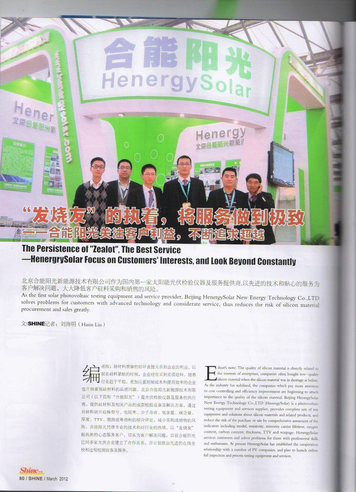 新聞中心 >> 媒體報(bào)道 >> 《Shine》:“發(fā)燒友”的執(zhí)著,將服務(wù)做到極致——合能陽(yáng)光關(guān)注客戶利益,不斷追求超越
