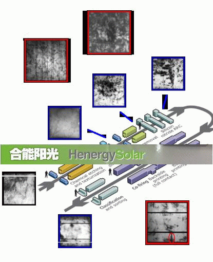 在太陽能電池的生產(chǎn)過程中,會出現(xiàn)許多嚴(yán)重的問題,如雜質(zhì)、碎片、隱裂、黑心表面污染、擴(kuò)散不均、電極不良等等,正是這些缺陷限制了電池的光電轉(zhuǎn)化效率和使用壽命。同時(shí),由于沒有完善的行業(yè)標(biāo)準(zhǔn),Si片原材料質(zhì)量也是參差不齊,一些缺陷片的存在直接影響到組件乃至光伏系統(tǒng)的穩(wěn)定性。因此,太陽能行業(yè)需要有快速有效和準(zhǔn)確的定位檢驗(yàn)方法來檢驗(yàn)生產(chǎn)環(huán)節(jié)可能出現(xiàn)的問題。