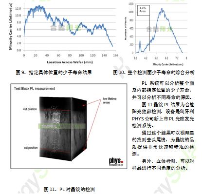PL系統(tǒng)可以分析整個(gè)面及內(nèi)部指定位置的少子壽命,并可以分析不同壽命的原因。