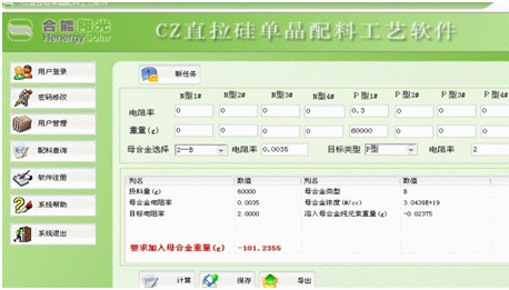 位于美麗的揚州,我公司一客戶自投資多晶硅項目以來,各方面都運轉(zhuǎn)正常,并且業(yè)務(wù)較上一年有遞增的趨勢,但是在實際拉晶車間,總能看見生產(chǎn)經(jīng)理每次投料和摻雜的時候都是一頭汗水的在不停的計算著各種料摻雜的重量及比例,雖然最終的數(shù)據(jù)是準(zhǔn)確的,但是每次都要耗費他大半個時辰,他整天夢想著,要是有一個按鈕,我只要一按就能出現(xiàn)我想要的各種比例,只要依照表中的比例配比,那么拉出來的棒一定是完美的成品。經(jīng)過多方考證,應(yīng)用我公司的摻雜配料工藝軟件后將復(fù)雜的程序變得簡單化,真正做到一點按鈕就能得到你想要的數(shù)據(jù)。使得生產(chǎn)效率、工作效率大大提高。