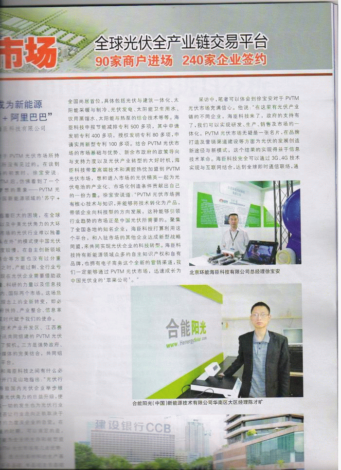 Newsroom >> "Phtovoltaic Newspaper":The interview to Mr Chen from HenergySolar